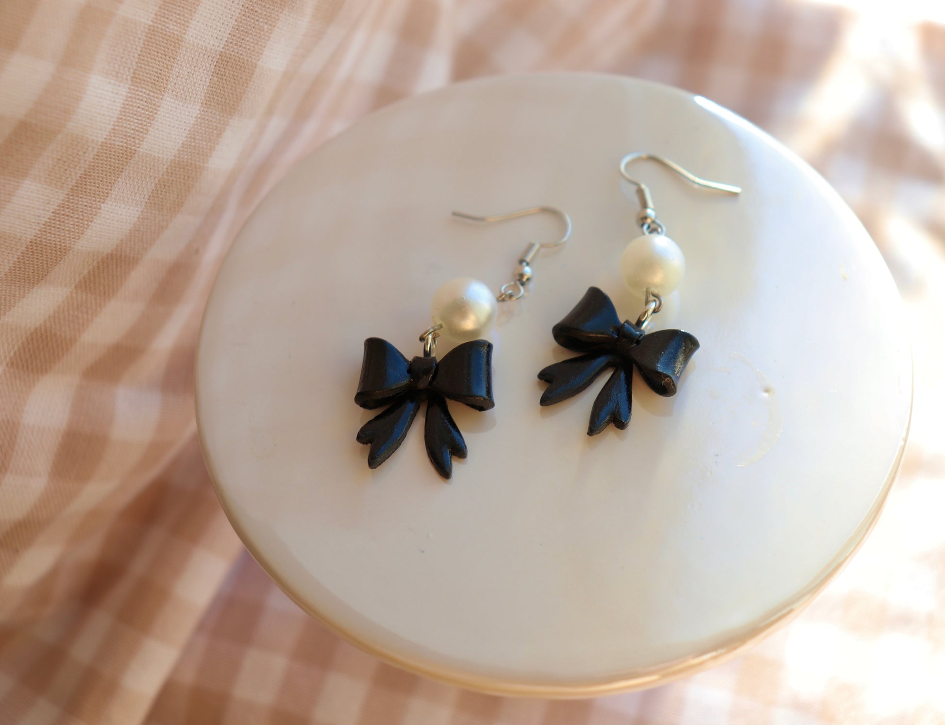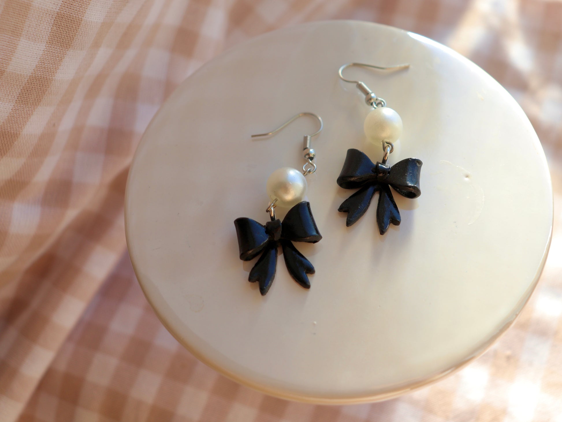 Sweet with a touch of charm, the Pearl Darlings earrings feature hand-sculpted clay bows finished with a luminous pearl accent. Each bow is shaped by hand, giving every pair its own subtle personality and making no two exactly alike.